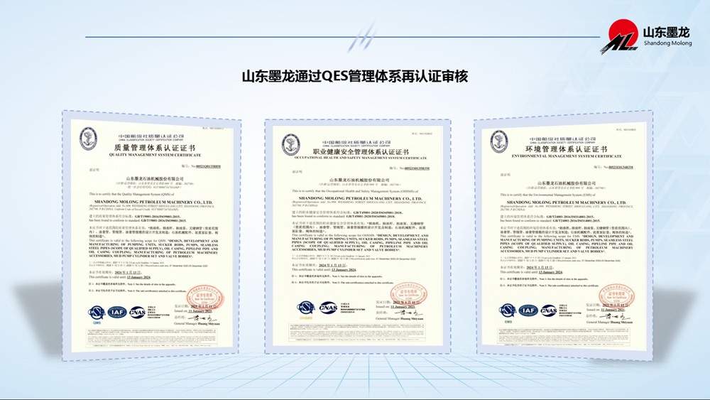 近日,中國(guó)船級(jí)社質(zhì)量認(rèn)證公司(以下簡(jiǎn)稱“中國(guó)船級(jí)社”)完成對(duì)山東墨龍及相關(guān)下屬子公司的QES管理體系(質(zhì)量管理體系、環(huán)境管理體系和職業(yè)健康安全管理體系)再認(rèn)證審核工作。中國(guó)船級(jí)社認(rèn)證工作組通過現(xiàn)場(chǎng)審核,確認(rèn)山東墨龍?jiān)俅潍@得認(rèn)證注冊(cè)資格,并頒發(fā)認(rèn)證證書,證書有效期為三年。